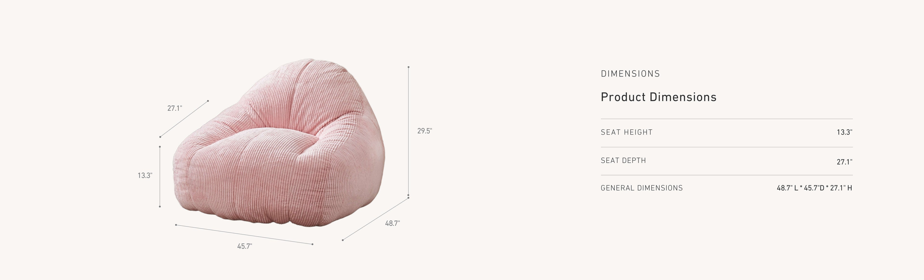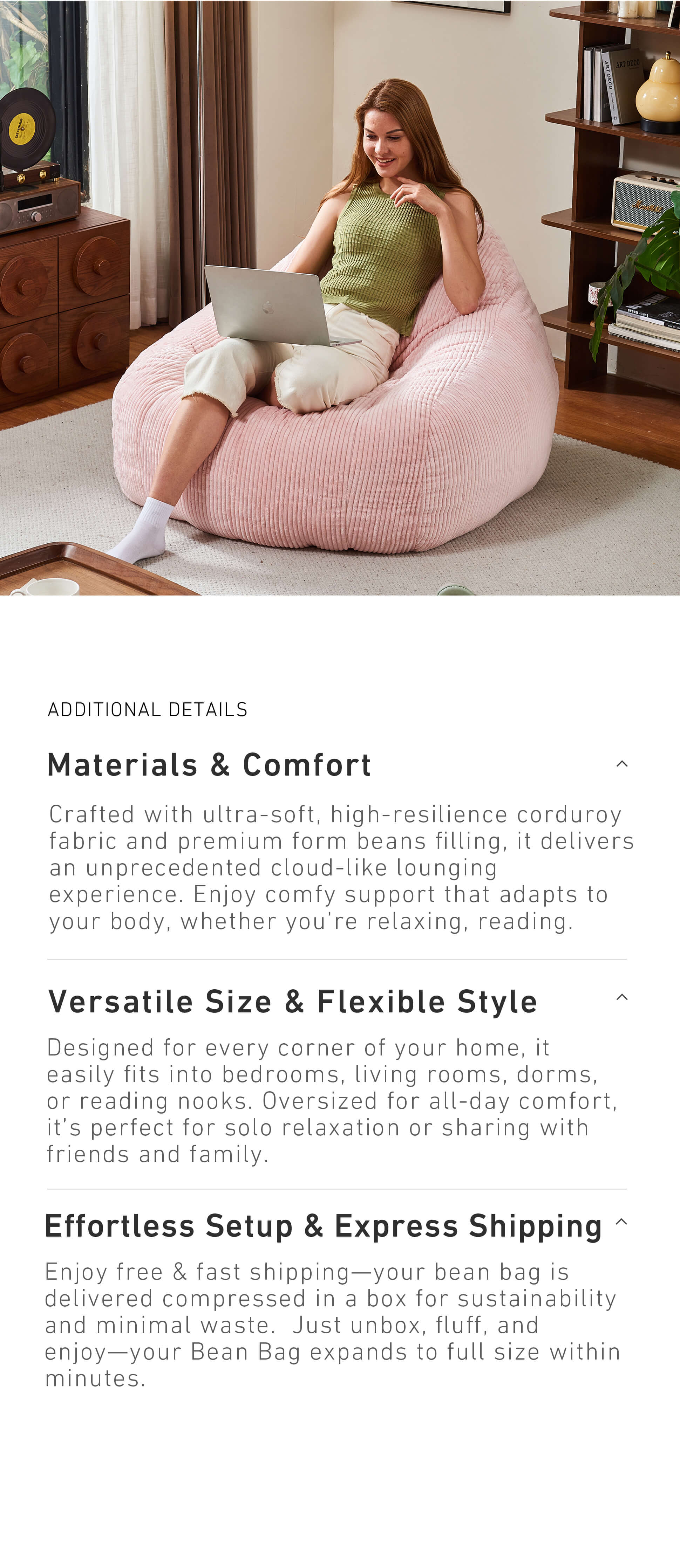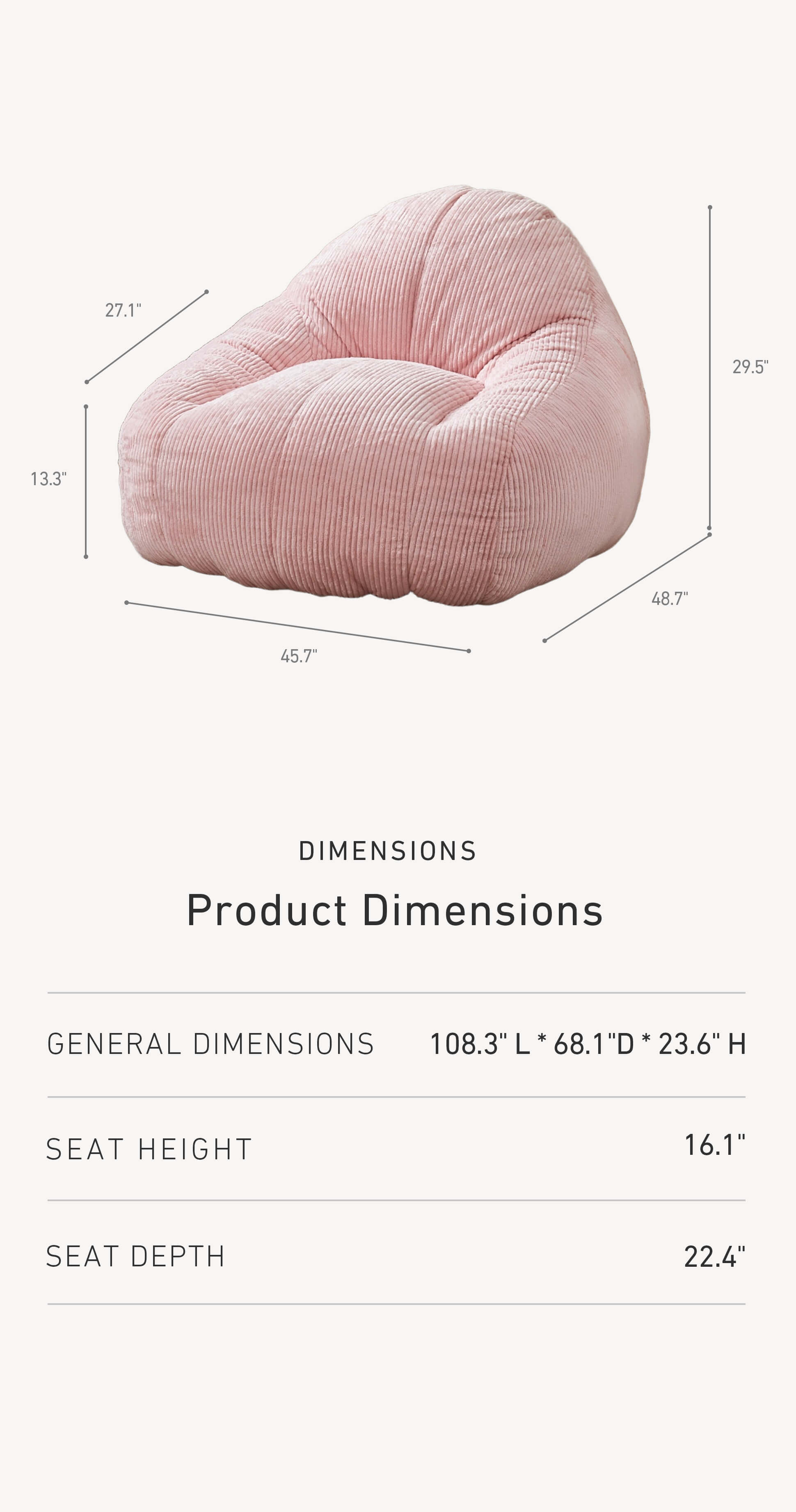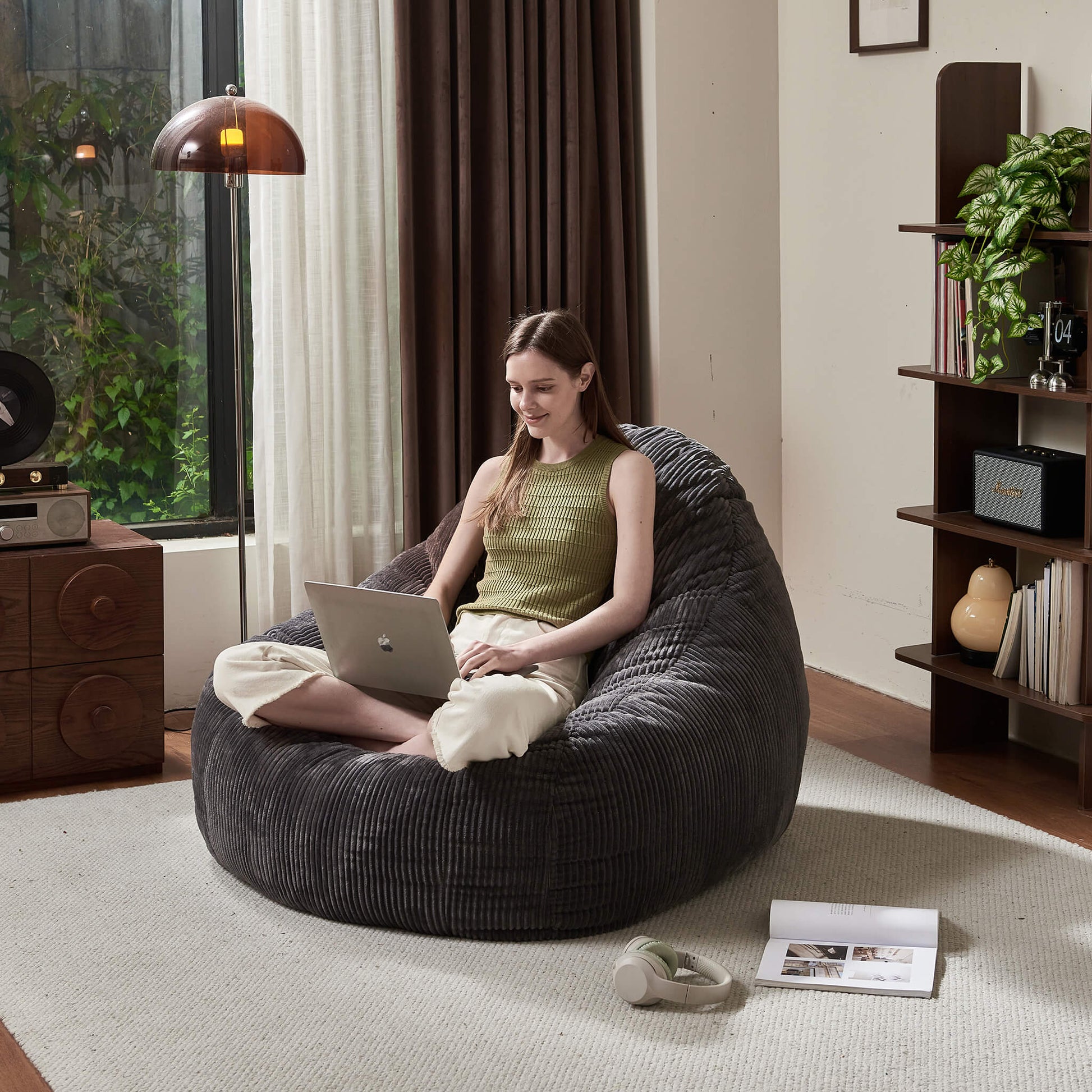 Featuring ultra-soft corduroy fabric, this bean bag redefines cozy living. The breathable, durable material not only enhances comfort but also stands up to wear and tear, maintaining a fresh and stylish look in your home.